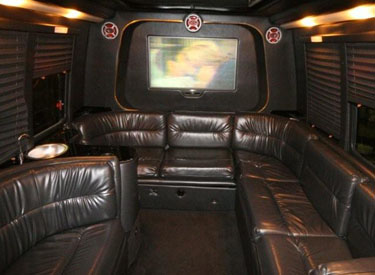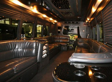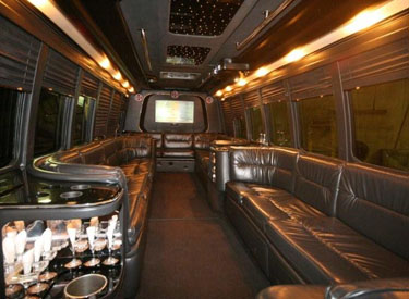 Interior Description About A 2001 Ford F550Perimeter leather couch seating, three chill bars including a wet bar, 42' plasma T.V. DVD player, CD with superior surround sound, P.A. system and MP3 player hook-up with a 1/8' mini-jack plug in cord. Seating for up to 24 passengers. Black laquar bar, wet sink.
