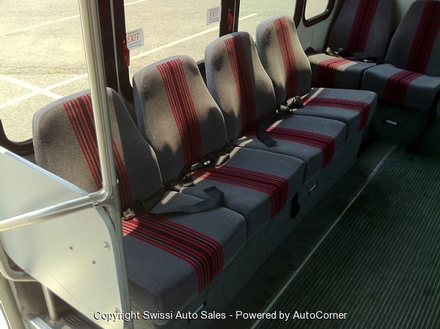 Interior Description About A 2009 Ford E45014 seats and room for standing passengers (holding bars at the top).